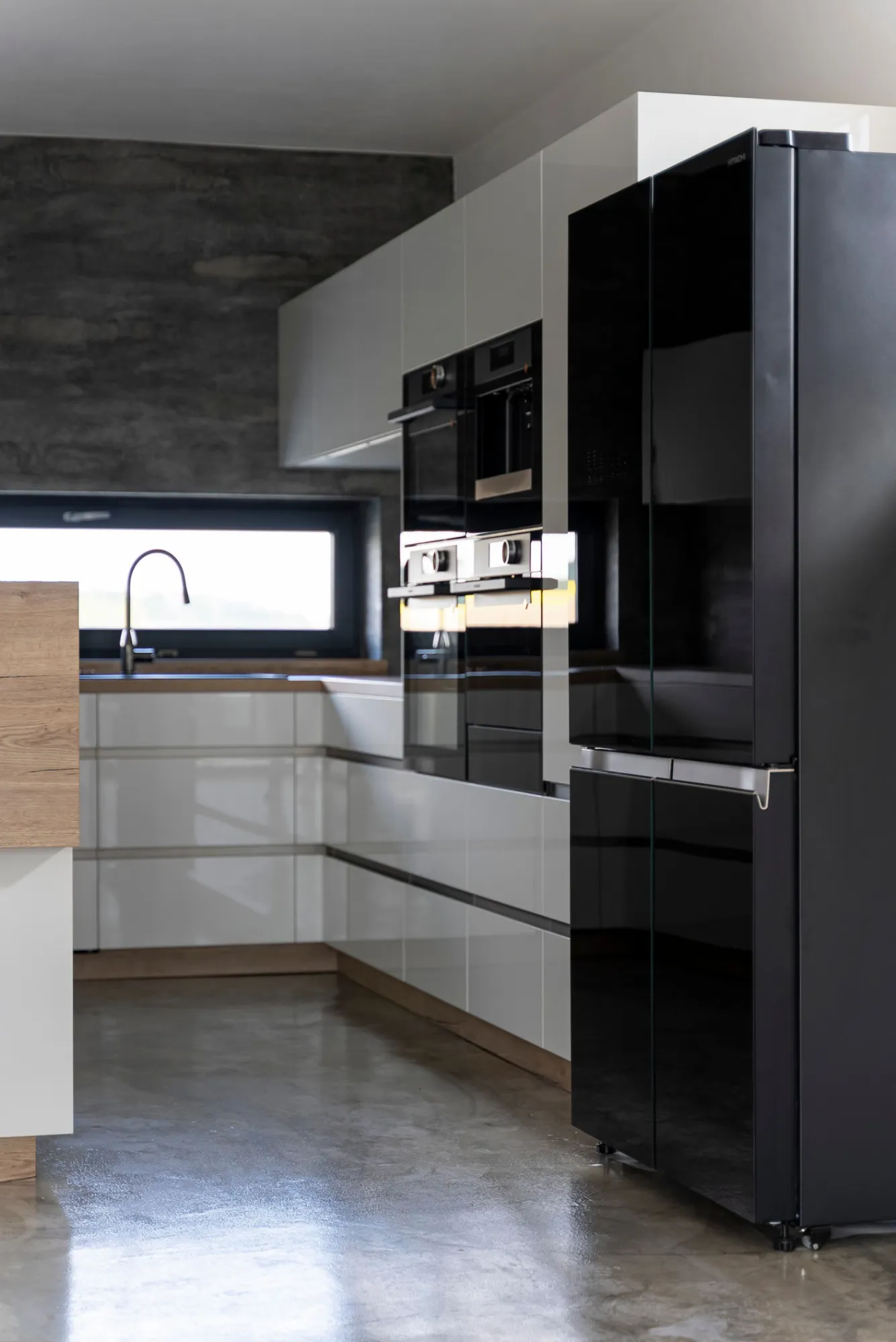 Díky promyšlené kombinaci spotřebičů kuchyň nabízí nekonečné možnosti vaření a zároveň harmonickou souhru designu více značek. Spotřebiče z kolekce De Dietrich Absolute Black nádherně ladí se stylovou kombinovanou čtyřdveřovou chladničkou Hitachi z černého skla. Dokonce matný černý dřez Schock je doplněn měděnou baterií i všemi komponenty tak, aby krásně sjednotil měděné detaily na spotřebičích značky De Dietrich. Díky propojení designu, funkcí, technologií a vysoké kvality materiálů mají majitele kuchyň na profesionální úrovni.